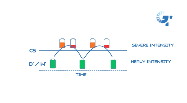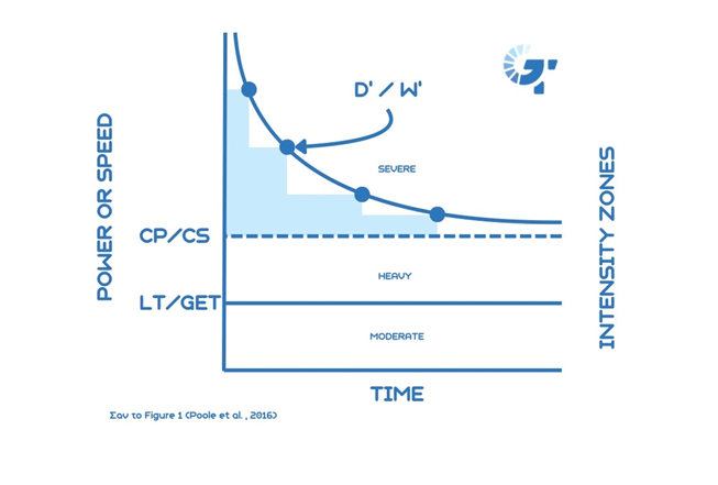 Όταν η ένταση βρίσκεται πάνω από την Κρίσιμη Ταχύτητα (CS), το απόθεμα D′/W′ «αδειάζει». Όταν η ένταση πέφτει κάτω από την CS, το D′/W′ «ξαναγεμίζει». Αυτό το μοντέλο εξηγεί γιατί η διαλειμματική προπόνηση μπορεί να παρατείνει τον συνολικό χρόνο εργασίας πάνω από την CS κάθε φάση αποκατάστασης επιτρέπει μερική αναπλήρωση του περιορισμένου αποθέματος.